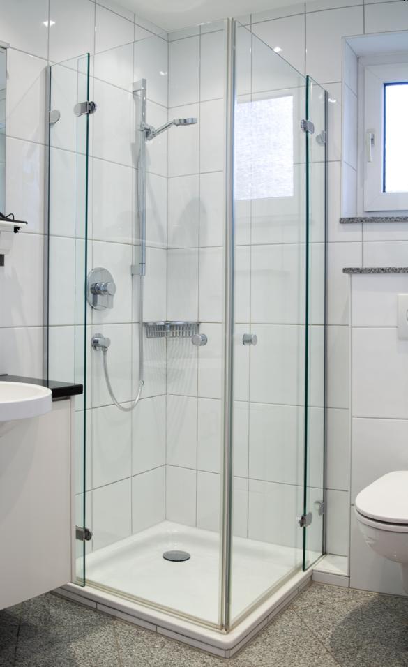 - modernes Badezimmer mit bodennaher Dusche und Handtuchheizkörper
