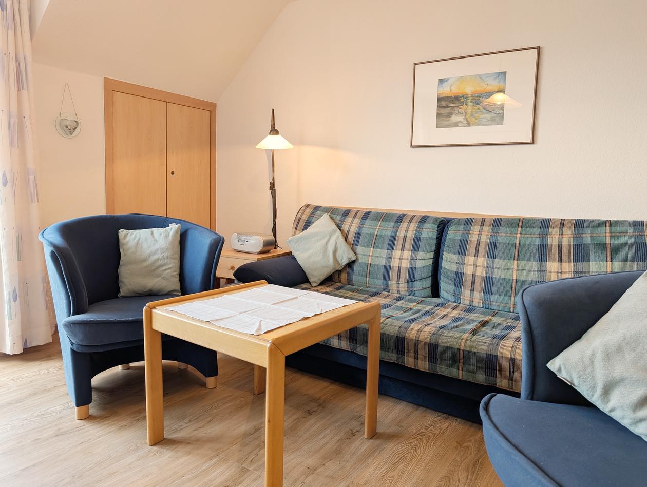 Die Wohnung bietet genug Platz auf zwei Etagen, sie ist hell und gemütlich eingerichtet wie zu Hause, so daß man nicht viel Extras mitnehmen muss. In der Wohnung steht eine eigene Waschmaschine. Die Schlafcouch im Wohnzimmer sowie das zweite WC sorgen für zusätzliche Entspannung im Urlaub für bis zu vier Personen.